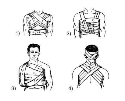 потерпілому надають зручне положення, щоб мати вільний доступ з усіх боків до поверхні, яку потрібно бинтувати;